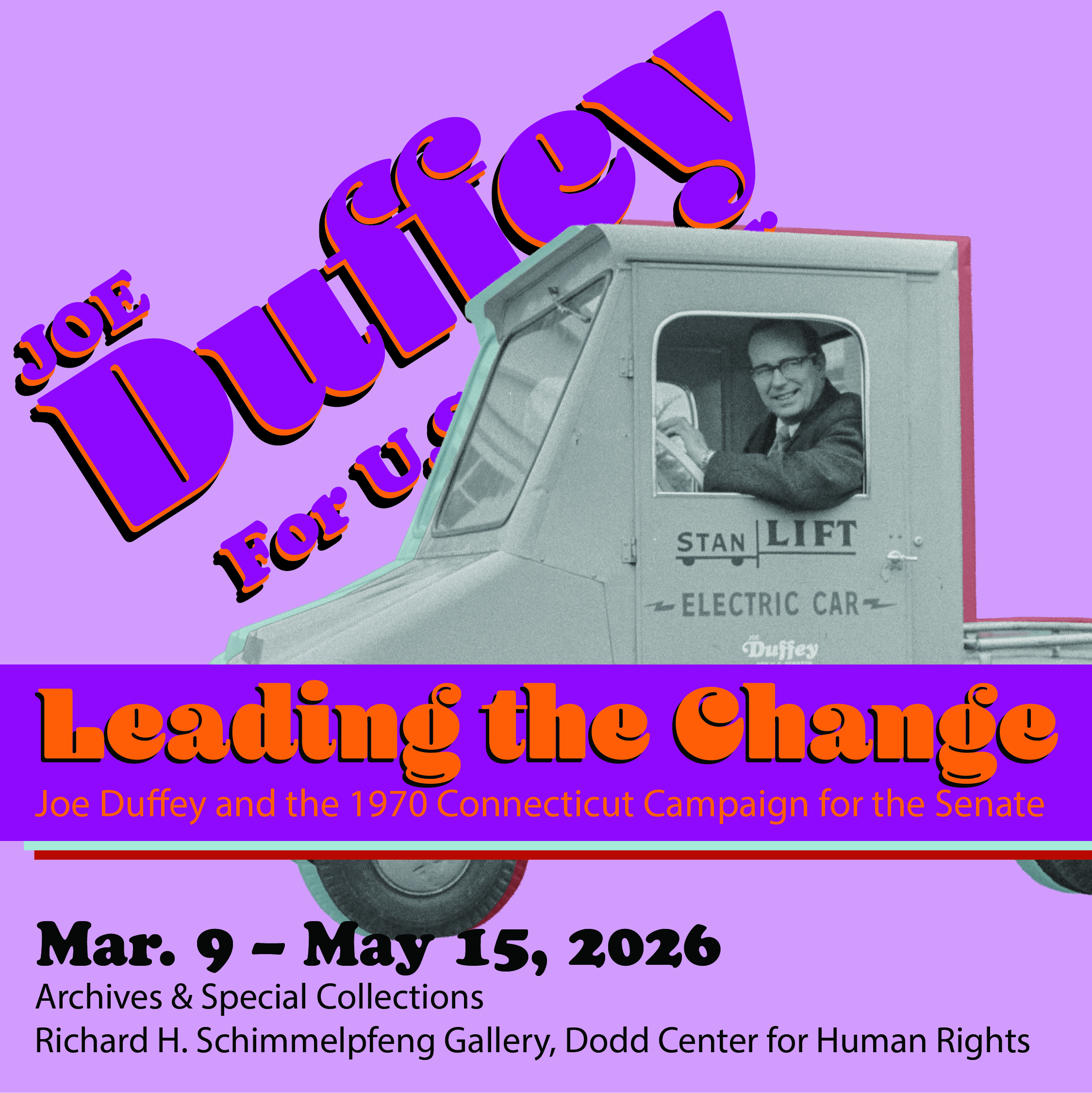 This exhibit showcases the materials created during a political race that “galvanized a generation of campus liberals.” Managed in part by individuals who would later become national political leaders (Bill Clinton, Tony and John Podesta, Michael Medved, Larry Kudlow, Joe Lieberman, and Sam Gejdenson) and supported by major cultural figures (Paul Newman, Alexander Calder, William Styron, and Thornton Wilder), the campaign placed Joe Duffey at its center. A coal miner’s son, minister, professor, and antiwar and civil rights activist, Duffey brought a message that resonated widely.