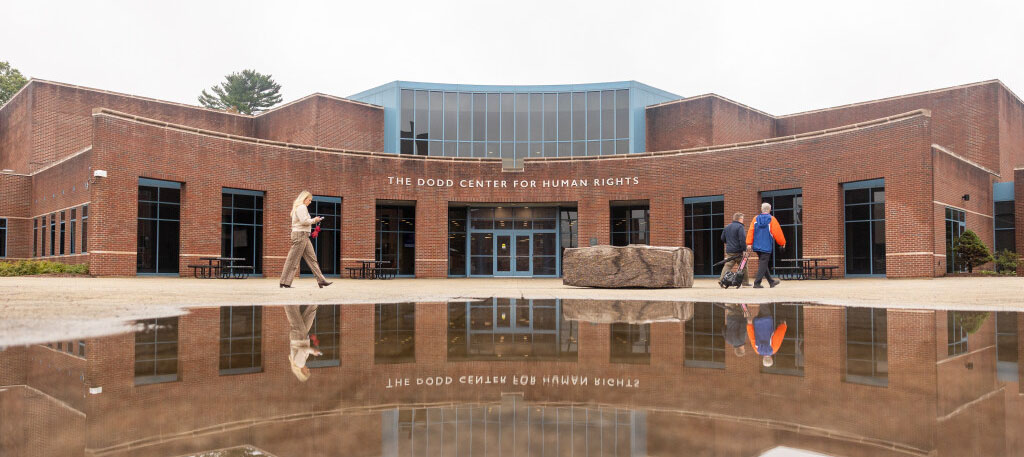 Cross Hillside Road (Gampel Pavilion will be on your left). Walk straight toward the Whetten Graduate Center with the Student Recreation Center on your right. As you approach the Whetten Graduate Center, you will see a small staff-only parking lot on your right. You can enter the side door of the Dodd Center for Human Rights and follow the corridor to the front lobby or continue straight to the plaza between the Dodd Center and Homer Babbidge Library and enter through the Dodd Center’s front door into the lobby. The McDonald Reading Room will be immediately in front of you.